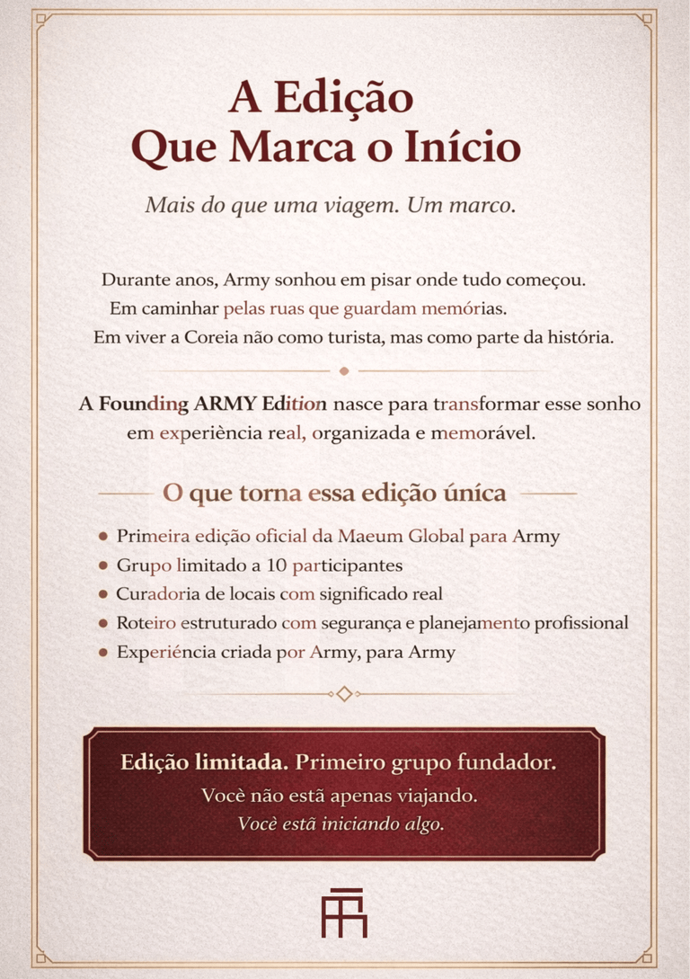 Para quem sente que a Coreia do Sul não é apenas um destino, mas uma conexão com a música, com a cultura e com tudo o que isso representa.